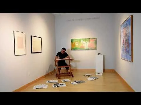 This was the first scriptorium to take place in an institution. It began with a procession from the university art studios to the library. At the library, the performance took place using books on Chicano art and Minimalism that were formative to my intellectual development.